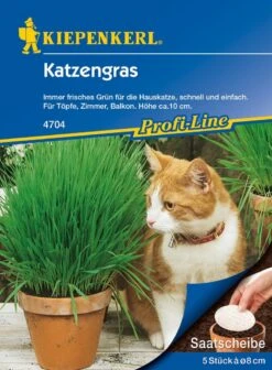 Regelmäßig im Abstand von ca. 1 Woche Saatscheiben auslegen damit Ihrer Katze immer frisch gewachsenes Grün zur Verfügung steht.