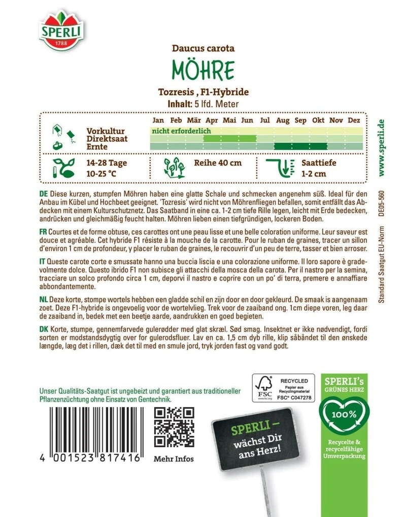 Sperli Möhrensamen Tozresis, F1, Saatband