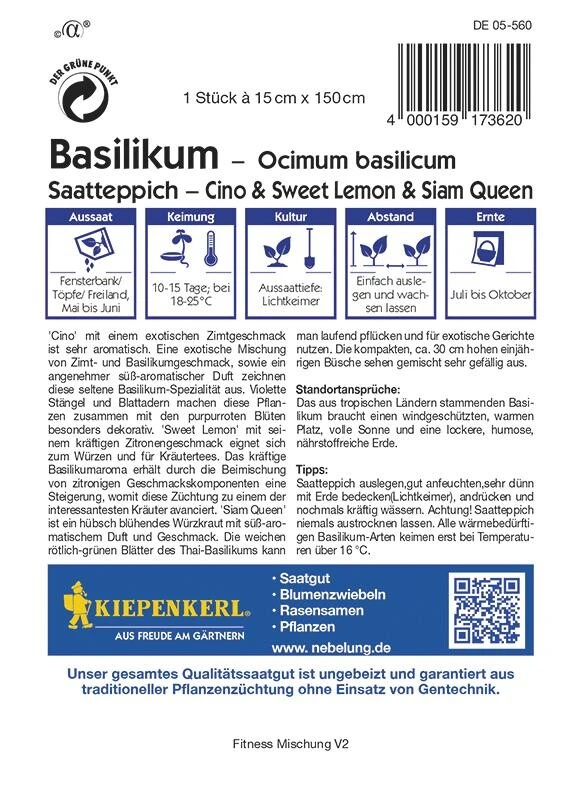 Basilikumsamen Cino & Sweet Lemon & Siam Queen, Saatteppich